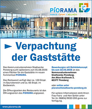Wir suchen ab dem 01.08.2026 einen neuen Pächter für unsere Gaststätte im PiORAMA.