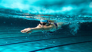 Der zentrale Anlaufpunkt im PiORAMA. Während das Sportbecken beste Voraussetzungen für ausgiebige Schwimmeinheiten bietet, lässt das Kombi- und Kinderbecken Kinderherzen höherschlagen. An der Rutsche und der Sprunganlage treffen sich dann alle zum gemeinsamen Vergnügen.